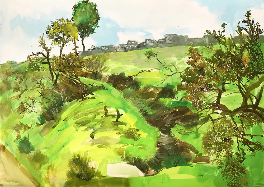 A move to Devon and first visit to Dartmoor painting (1) on the path from Two Bridges to Winston Wood and (2) the East Dart river at Postbridge.